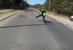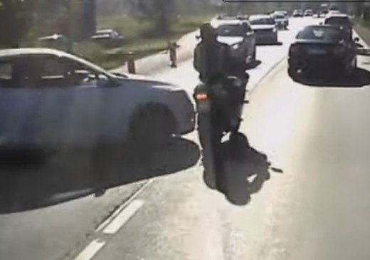 Viss labs, kas labi beidzas - motociklists nenokrīt un traumas negūst, taču video autoram ir jautājums: "Kurš vainīgs sadursmē"? Lasīt vairāk