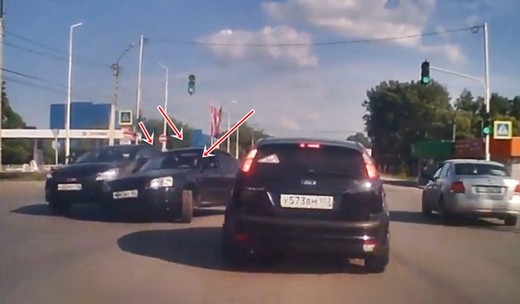 Vadītājs, kas, pēdējā mirklī iebrauc krustojumā no labās puses, nepaspēj pabeigt manevru un saduras ar mašīnām, kas brauc filmētājam pretējā virzienā. Lasīt vairāk
