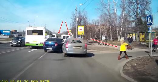 "Lada Granta" nevar nociesties un apbrauc "Kia," kas piestāj, lai izlaistu pasažieri (skatīt no 0:30). Lielie eksperti varētu paskaidrot mazajiem ekspertiem, cik punktus abi no sadursmē iesaistītajiem pārkāpj un kurš galu galā būs vainīgs. Lasīt vairāk