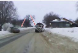 Ieraugot priekšā šķērsli, vieglais auto parāda labo pagriezienu, taču paātrināties un apsteigt kravas furgonu tā arī neiedrošinās. Pēdējā brīdī nospiestās bremzes situāciju neglābj un no sadursmes izvairīties neizdodas. Iespējams, citi situāciju redz savādāk, jo video oriģinālais paraksts skan "neļāva pagriezties." Lasīt vairāk