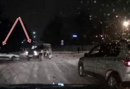 Video autors komentārā ierakstījis, ka braucot ar ātrumu 70 km/h pa slidenu ceļu, pa priekšu braucošais "Mitsubishi" nolēmis atslēgt vienu no tiltiem. Lūk, kas no tā iznāk! Lasīt vairāk