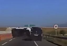 Lūk, kas notika, kad kravas auto šoferis strauji nospieda bremzes, lai izvairītos no uzbraukšanas trīsriteņu transportlīdzeklim. Lasīt vairāk