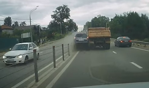 Kamaz šoferis nespēj izšķirties, kuru joslu ieņemt - sākumā dodas pa labi, tad griež pa kreisi un iespiež barjerā Opel, pēc notikušā no avārijas vietas aizbraucot. Lasīt vairāk
