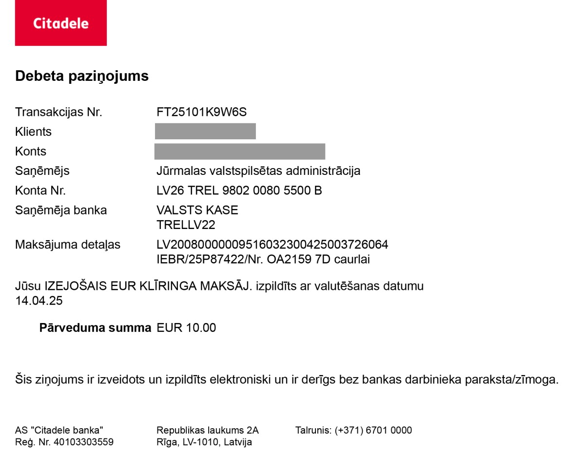 Jāņem vērā arī tas, ka visitjurmala.lv nav sakārtoti norēķini ar banku kartēm un ir iespējams norēķināties tikai ar internetbanku starpniecību. Te arī rodas problēma un iemesls sodam, jo Latvijā joprojām ir bankas, kas maksājumus starp bankām nedēļas nogalēs neizpilda. “Audi” vadītājam apmaksājot nodevu par caurlaidi piektdienas pēcpusdienā 11. aprīlī vai sestdienā 12. aprīlī, vēl nenozīmēja to, ka caurlaide ir nopirkta, jo banka maksājumu izpildīja vien pirmdienā 14. aprīlī.