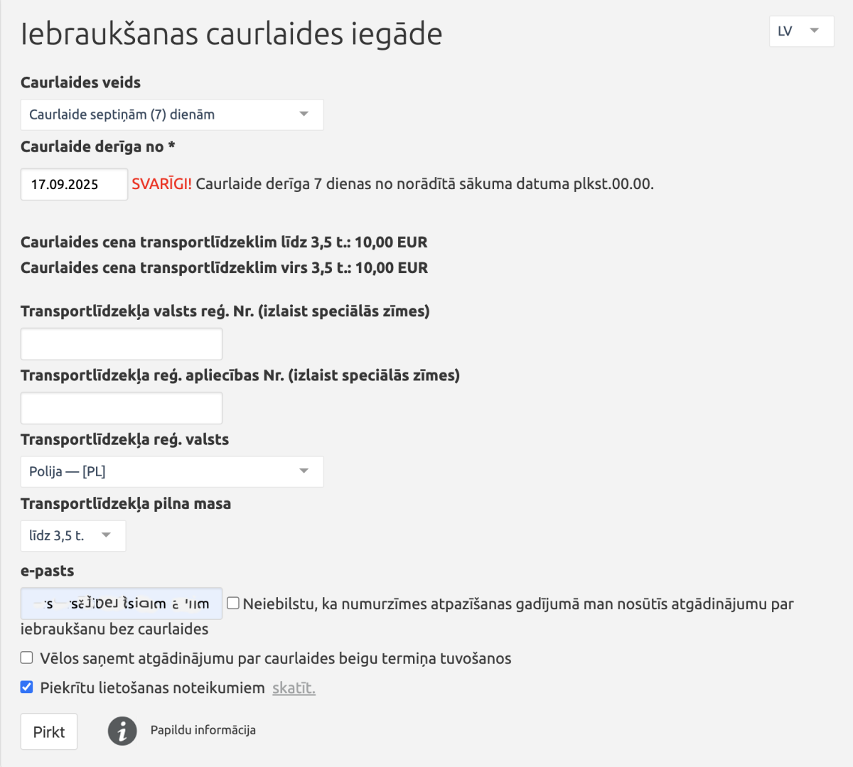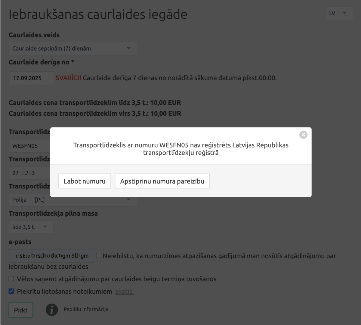 Tomēr lielākā daļa šo tirdzniecības vietu piedāvā iegādāties caurlaidi vienai dienai. Bet caurlaide ilgākam termiņam ir jānoformē Jūrmalas e-pakalpojumu vietnē visitjurmala.lv (turklāt tad būs nepieciešams arī transportlīdzekļa reģistrācijas apliecības numurs). Un sistēma ir veidota tā, ka tā neatpazīst informāciju par ārzemēs reģistrētiem transportlīdzekļiem, lai gan speciāli lauki datu norādīšanai par šādiem transportlīdzekļiem ir paredzēti. Tiek rādīta kļūda par to, ka transportlīdzeklis nav reģistrēts Latvijas Republikas transportlīdzekļu reģistrā.