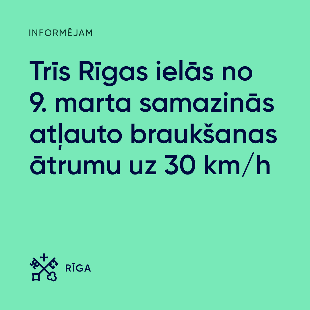 No 9. marta vairākās Rīgas apkaimēs – Ķīpsalā, Imantā, Ziepniekkalnā un Šķirotavā – tiks ieviests 30 km/h braukšanas ātruma ierobežojums atsevišķās ielās un to posmos, lai uzlabotu satiksmes drošību un pielāgotu braukšanas ātrumu esošajai ielu infrastruktūrai.