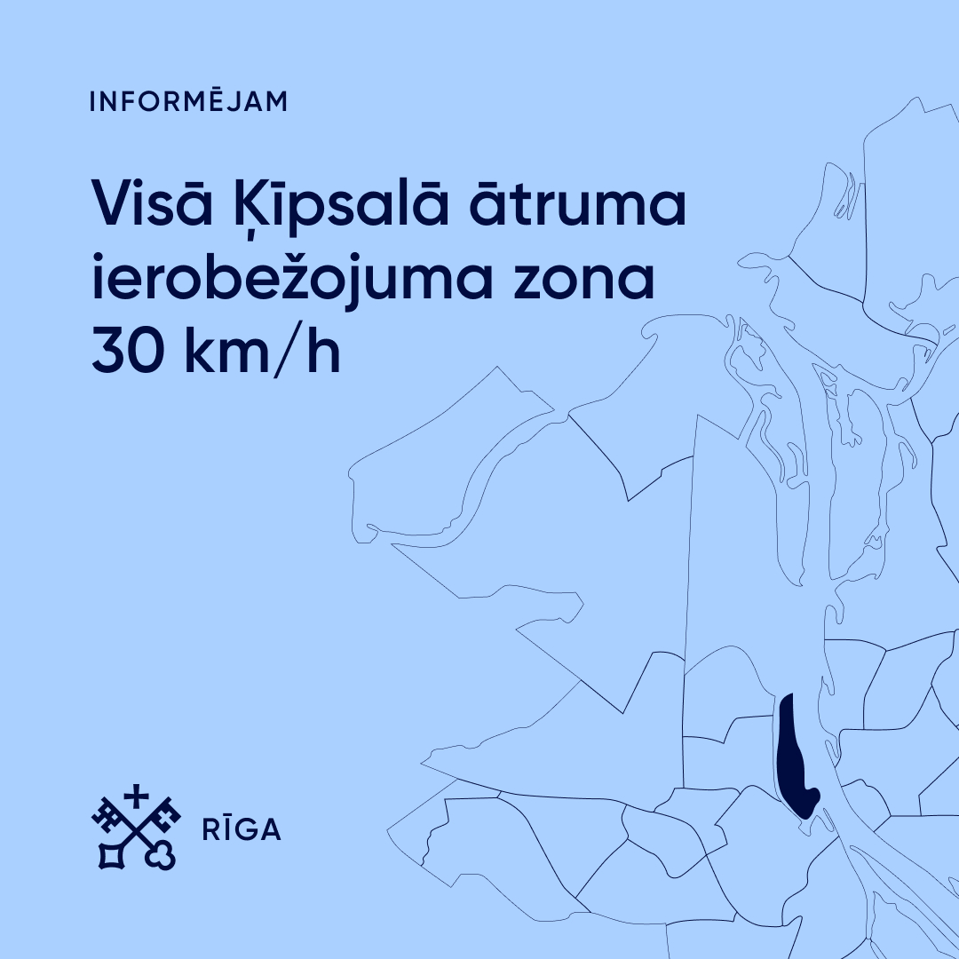 Visā Ķīpsalas apkaimē plānots ieviest 30 km/h ātruma ierobežojuma zonu, izņemot ielas, kurās jau ir noteikta dzīvojamā zona. Šāds lēmums pieņemts, ņemot vērā šauro ielu profilu, kā arī intensīvo velosatiksmi un gājēju plūsmu. Ķīpsala ir apkaime ar būtisku velosatiksmes nozīmi un daudzām gleznainām pastaigu vietām, tādēļ zemāks atļautais braukšanas ātrums ir svarīgs, lai uzlabotu satiksmes drošību un nodrošinātu drošu, savstarpēji cieņpilnu mijiedarbību starp visiem satiksmes dalībniekiem.
