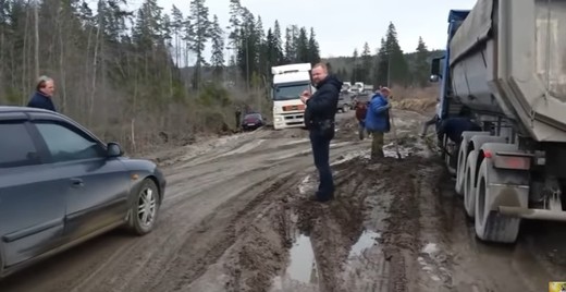 Federālā trase А-121 "Сортавала" ("Sortavala") Krievijā, vietām pārvērtusies par neizbraucamu purvu. Video redzams, ka vienā no šādām lamatām spiesti gaidīt aptuveni 30 automobiļu, kas nevar turpināt kustību ceļa klātnes kritiskā stāvokļa dēļ. Lasīt vairāk