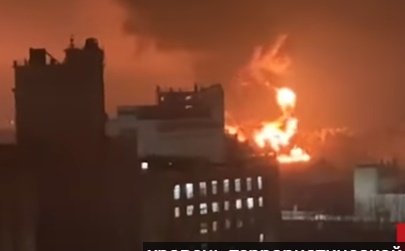 Žurnālists Aleksandrs Buņins tviterī ziņo, ka pēc vairākiem sprādzieniem aizdegušies divi degvielas rezervuāri armijas daļā Maskavas prospektā un naftas pārstrādes rūpnīcā "Selmash".