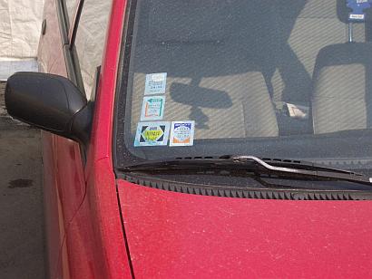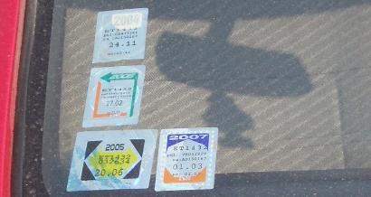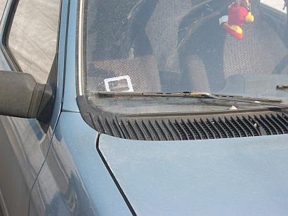 Šīs mašīnas atrodas policijas transportam paredzētā stāvvietā, bet uz mašīnām nav nekāda trafarējuma un atļaujas logā, kas atļautu šīm mašīnām stāvēt policijas transportam domātā stāvvietā.