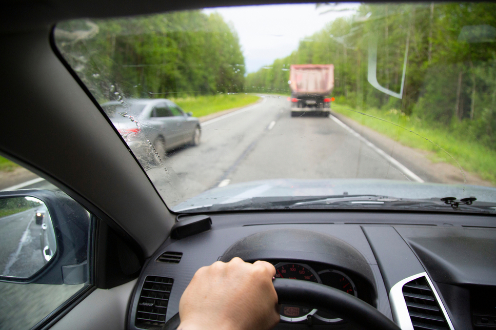 · Lietus laikā jāņem vērā, ka aiz jebkuras braucošas automašīnas paceļas ūdens mākonis, turklāt smagajiem auto tas notiek arī uz sāniem. Tādēļ jārēķinās, ka apdzenot auto var tikt apšļakstīts. Atrodoties pretējā braukšanas joslā, tas ir ļoti bīstami, tāpēc stiprā lietū apdzīšanas manevrus nav ieteicams veikt. Ja esam apšļakstīti, maksimāli ātri jāiedarbina logu slotiņas, lai atjaunotu redzamību.