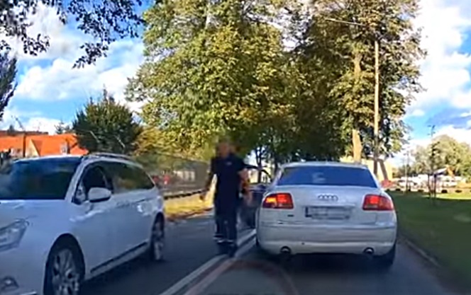 No apraksta noprotams, ka video autors ar skaņu signālu brīdina Audi vadītāju, kurš atpakaļgaitā izbrauc no pagalma. Pēdējais to uztver kā "vērsis sarkanu lupatu" un metas video autoram pakaļ. Lasīt vairāk