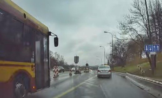 Pilsētas satiksmes autobuss pirms ceļa sašaurinājuma mazliet patraucē video autoru. Lasīt vairāk