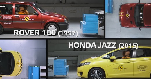 EuroNCAP video, kur triecientestā salīdzināts 1997.gada "Rover 100" un mūsdienu "Honda Jazz", redzams, cik milzīgu soli 20 gados autobūve spērusi automobiļu drošības jomā. Lasīt vairāk