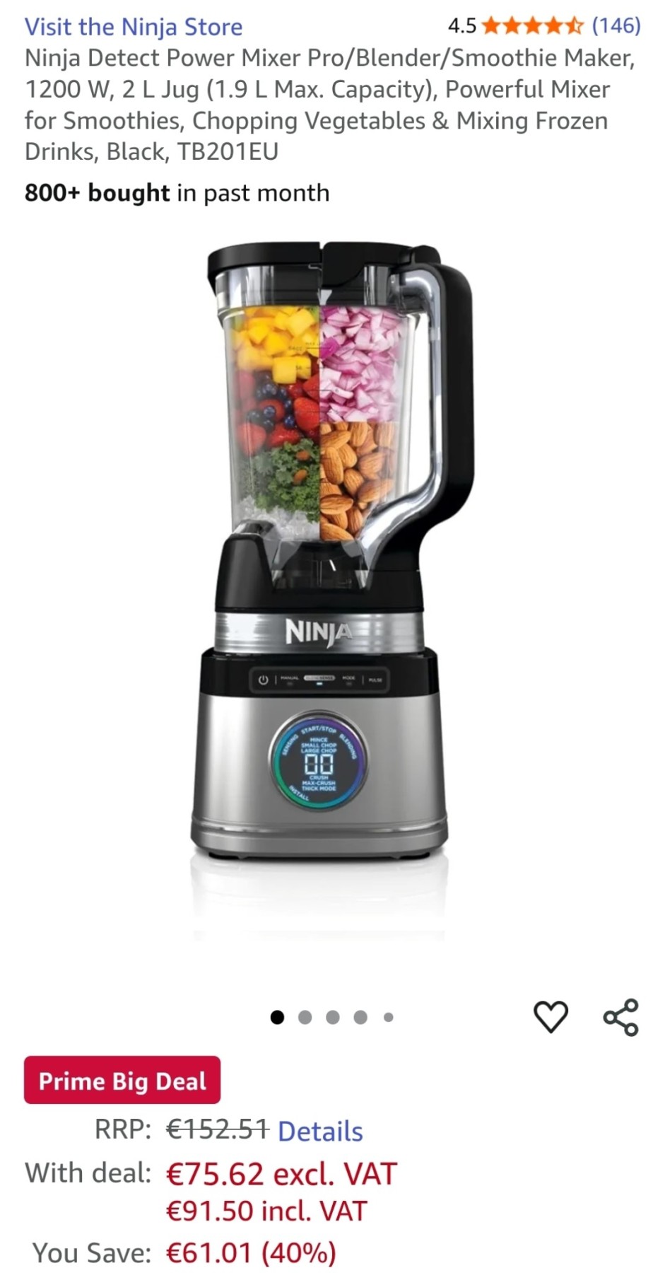Ninja Detect Power Mixer Pro/Blender/Smoothie Maker, 1200 W, 2 L Jug