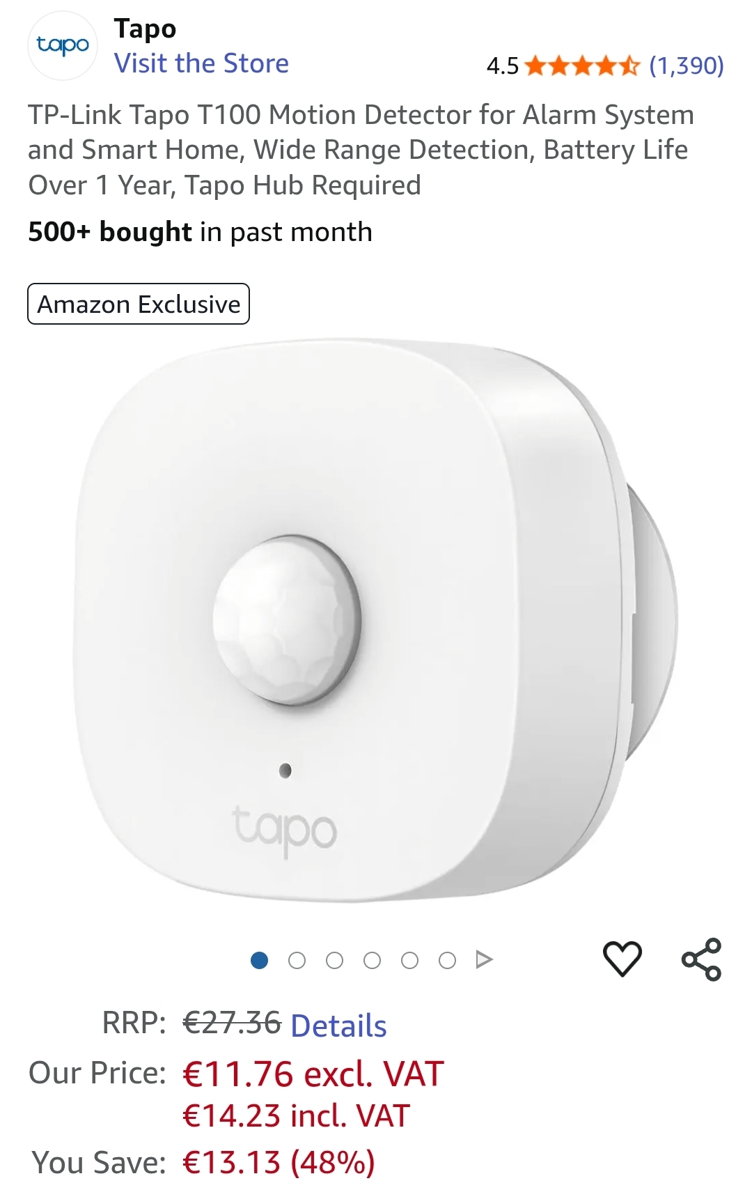 TP-Link Tapo T100 Motion Detector for Alarm System and Smart Home