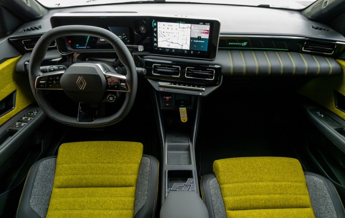 Salonā “Renault 5” turpina savu retro-futūristisko noskaņu. Arī te izkārtojums veidots nedaudz atsaucot atmiņā oriģinālo “Renault 5”. Vadības panelī dominē divi ekrāni – 10,1 collu digitālais mērinstrumentu panelis un 10 collu centrālais skārienekrāns, kas darbojas ar “OpenR Link” sistēmu un piedāvā integrētus “Google” pakalpojumus. Informācijas un izklaides sistēmā ir iestrādāts balss asistents “Reno”, kam ir “Chat GPT” mākslīgā intelekta atbalsts. Pēc izskata un animācijām tas atgādina deviņdesmito gadu beigās populāro “Microsoft Office” asistentu - saspraudi “Clippy”. Tas ne vien ļauj ar balsi aktivizēt kādu no auto funkcijām vai atbild uz jautājumiem, bet arī monitorē automašīnas stāvokli.