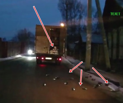 Aizņemts ar auto vadīšanu pa bedraino ielu, furgoniņa šoferis pat nemana, ka aizmugures durvis atveras un uz ielas izkrīt kaste ar alu (skatīt no 3:44). Lasīt vairāk