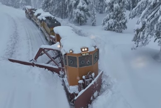 Drons pavada dzelzceļa sliežu sniega tīrītāju ASV, Kalifornijas štatā. Lasīt vairāk