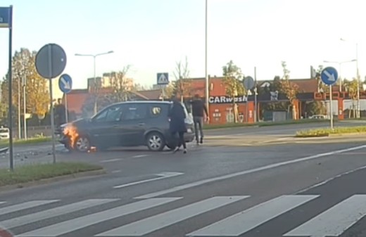 Krustojumā saduras divi automobiļi, kā rezultātā notiek aizdegšanās. Pēc īsa apmulsuma brīža, palīgā steidzas apkārtējie un liesmas tiek apdzēstas. Lasīt vairāk