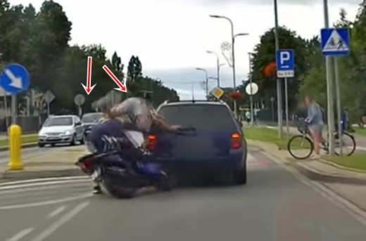 Motobraucēji palaiž garām brīdi, kad automašīna viņu priekšā apstājas, lai palaistu velosipēdistu uz gājēju pārejas. Lasīt vairāk