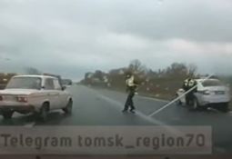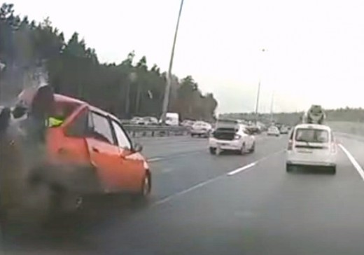 Hyundai Solaris vadītājs nepamana izlikto avārijas trijstūri ātrgaitas šosejas vidējā joslā, tādēļ turpina braukt un uztriecas diviem automobiļiem. Viens no tiem bija apstājies tehniska defekta dēļ, otrs, iespējams, lai palīdzētu. Lasīt vairāk