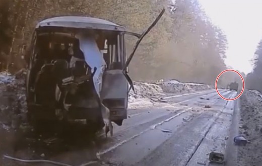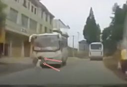 Saslīdot uz šaurā ceļa autobuss pazaudē aizmugures daļu, piedzīvojot sadursmi ar kravas auto. Laimīgā kārtā pēdējā solu rindā pasažieru nebija. Lasīt vairāk