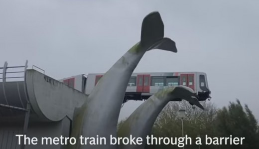 Milzu betona vaļa skulptūra neļāvusi nogāzties metro vilcienam, kad tas caursitot barjeru, aizbraucis tālāk par savu pieturvietu un apstājies nepilnu 10 m augstumā, paliekot uz vaļa astes. Lasīt vairāk