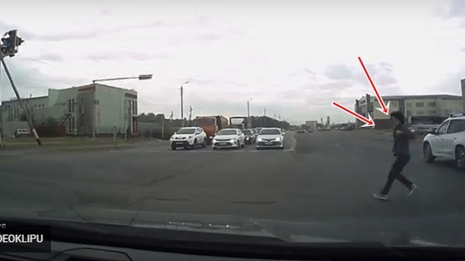 Video autors spiests izvairīties, lai neuzbrauktu sievietei, kas šķērso ielu pie aizliedzošā signāla. Lasīt vairāk