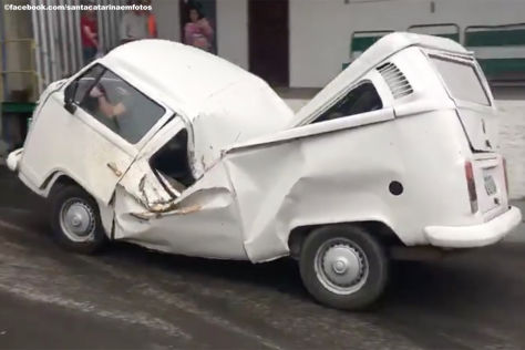 Šķiet, attēlā redzamais "Volkswagen" busiņš ir "gājis bojā notikuma vietā" - vētras laikā krītošs koks to deformējis tik ļoti, ka virsbūve pārrauta teju uz pusēm. Lasīt vairāk