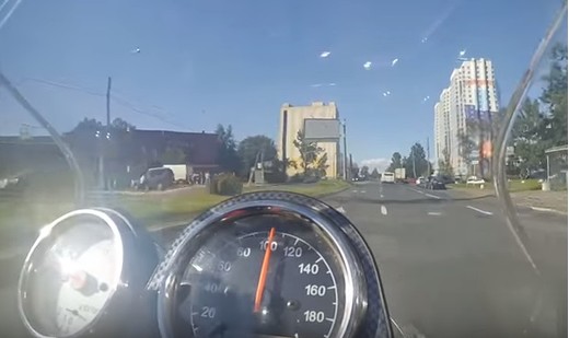 Motociklists pilsētā brauc ātrāk nekā 100 km/h (skatīt no 0:20), mirkli vēlāk viņš saduras ar "Kia" un avārijā vaino autovadītāju, kurš "neskatās, kur brauc". Lasīt vairāk