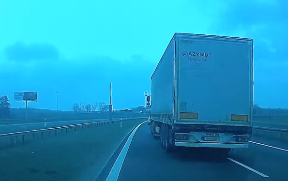 Video autors saglabā mieru arī tad, kad viņa priekšā iznirst kravas auto, neatstājot brīvu vietu manevram. Lasīt vairāk