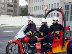 Ukrainas Civilās Aizsardzības universitātes studenti ir izgudrojuši ugunsdzēsības motociklu. Tas ir aprīkots ar pulverveida vai putu ugunsdzēšamo aparātu un ugunsdzēšamo stobru. Motociklā var iesēsties trīs cilvēki, ar tā palīdzību var nodzēst nelielus ugunsgrēkus.