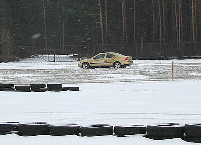 Kad pirms 2 nedēļām braucu ar AWD pa Ziemeļvidzemes ceļiem, AWD neko īpašu nespēja parādīt, ja nu vienīgi savu jaudu 200 Zs. Šeit, Biķerniekos, uz apsnigušas kartingu trases tas varēja izrādīt savu raksturu. Tā kā pats esmu pieradis pie 100% aizmugures piedziņas, sākumā mēģināju izraisīt sānslīdi. AWD ļoti pretojās. Nekādas sānslīdes - pat braukšana kļūst nedaudz neinteresanta...