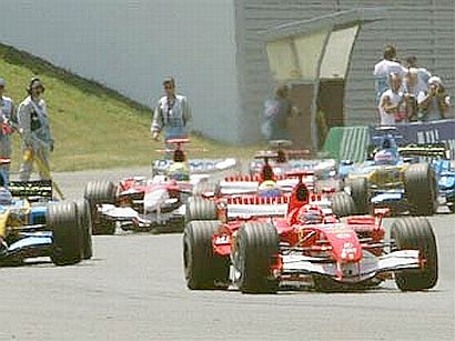Mihaels Šūmahers kļuvis par F1 Francijas GP posma uzvarētāju. Septiņkārtējais pasaules čempions startēja no pirmās pozīcijas un līderpozīcijas saglabāja visā sacīkstes garumā. Viņa galvenais sāncensis, Renault pilots Fernando Alonso mazāka pitstopu skaita dēļ apsteidza Felipi Massu un finišēja otrais.