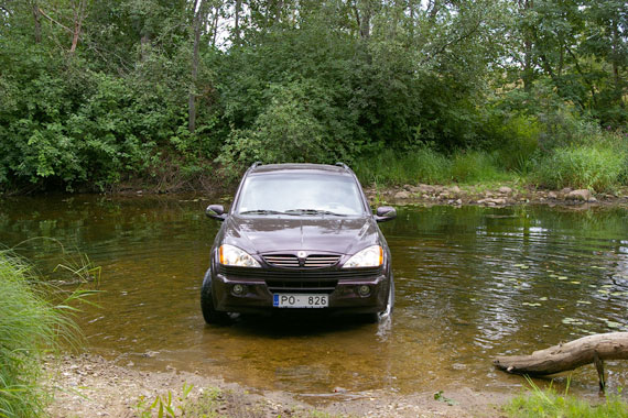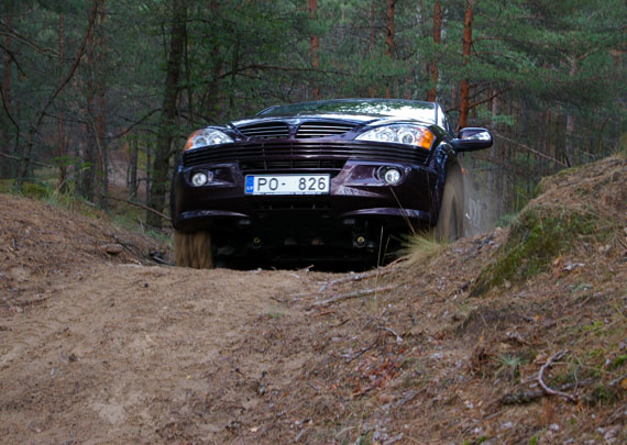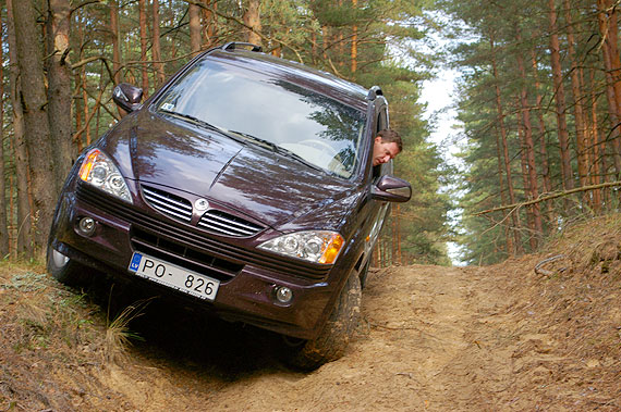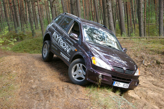 Pa ielu braukt var ar jebkādu auto. Tā kā ražotājs uzskata, ka Kyron ir īsts bezceļnieks, nolemjam pārbaudīt arī to. Pirms doties bezceļos, paskatāmies, kas notiek zem auto. Pamatīga vilšanās! Kaut arī šim auto ir visi apvidus auto priekšnoteikumi, klīrenss nav nekāds dižais (~20 cm) un biedē viena lieta – motors no apakšpuses ir pārsegts ar ... plastmasas „pannu”. Turpat atrodas radiatora apakša, kuru var neveiksmīgi sabojāt ar kādu zaru. Tā kā neesam pirmie šī auto lietotāji, uz „pannas” redzamas bezceļa izmēģināšanas atstātās pēdas.