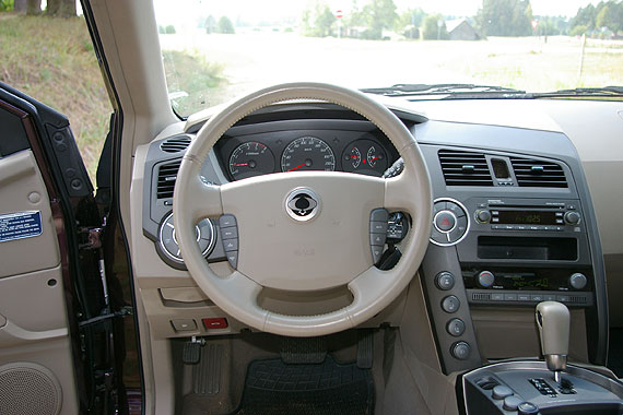 Mērinstrumentu panelis vienkāršs un viegli uztverams. Lai arī kā centos atrast borta datoru, lai varētu papētīt vidējos patēriņus, tādu neatradu – laikam Ssang Yong uzskata to par lieku. Nekas – var jau arī iztikt bez tā. Salons ir ļoti plašs un tur ērti var iekārtoties visi pasažieri. Uz stūres atrodas audio centra vadība. Turpat, bet nedaudz dziļāk – „kruīzkontrole”. Patīkams ādas salons, elektriski regulējami sēdekļi ar funkciju "atcerēties" trīs dažādus stāvokļus.