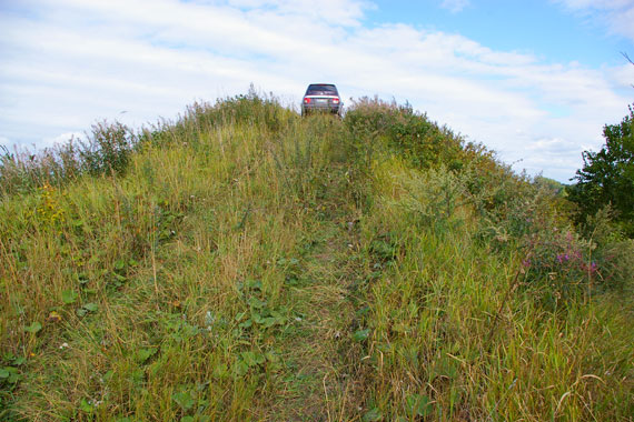 Ir ceļi un ir arī bezceļi. „Bezceļos” parasti brauc lēni un apdomīgi. Arī mēs nolēmām parāpot pa kalniņiem. Pamēģinājām, kur tad ar šo auto var uzrāpties. Un zināt – var! Šeit Kyron sevi parādīja no labās puses. Šim auto ir arī pazeminātie pārnesumi. Uzrāpties var, bet vai var tik arī lejā? Ir dzirdēts, ka Ssang Yong Kyron aprīkots ar tādu sistēmu, kas palīdz braukt lejā no stāviem kalniem - HDC (Hill Descent Control).