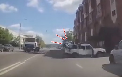 Motociklists lielā ātrumā apsteidz filmētāju pa labo pusi un ietriecas automašīnā, kas griežas pa kreisi. Lasīt vairāk