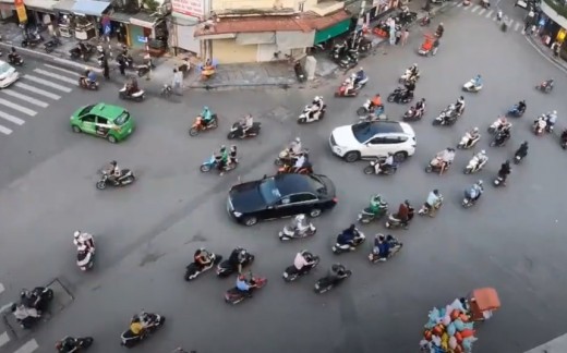Video no Vjetnamas. Luksoforu un satiksmes regulētāju šajā krustojumā nav, taču visi transportlīdzekļi aizbrauc kur vajag viens otram šķēršļus neradot. Lasīt vairāk