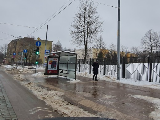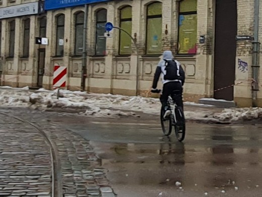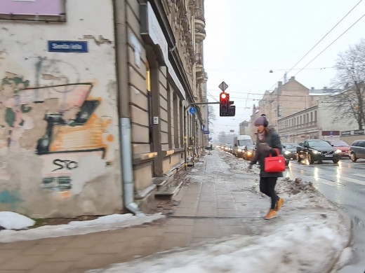 Šodien ir ļoti, ļoti slidens. Rīgā viena liksta (sniegs) pamazām atkāpjas, taču vietā cita - slidenas ietves un ielas, ko tikai pastiprina vieglā smidzināšana.