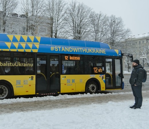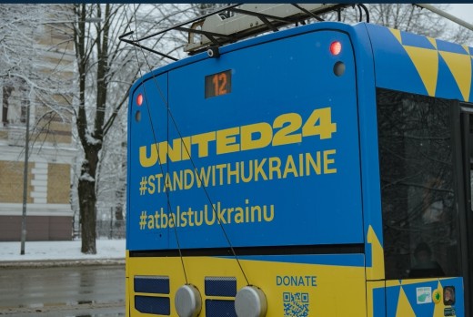 No 24. februāra Rīgā kursē īpaša dizaina trolejbuss, kuru rotā Ukrainas karoga krāsas un simboli. Trolejbusa dizains vēsta par globālo iniciatīvu United24, kas izveidota Ukrainas atbalstam.