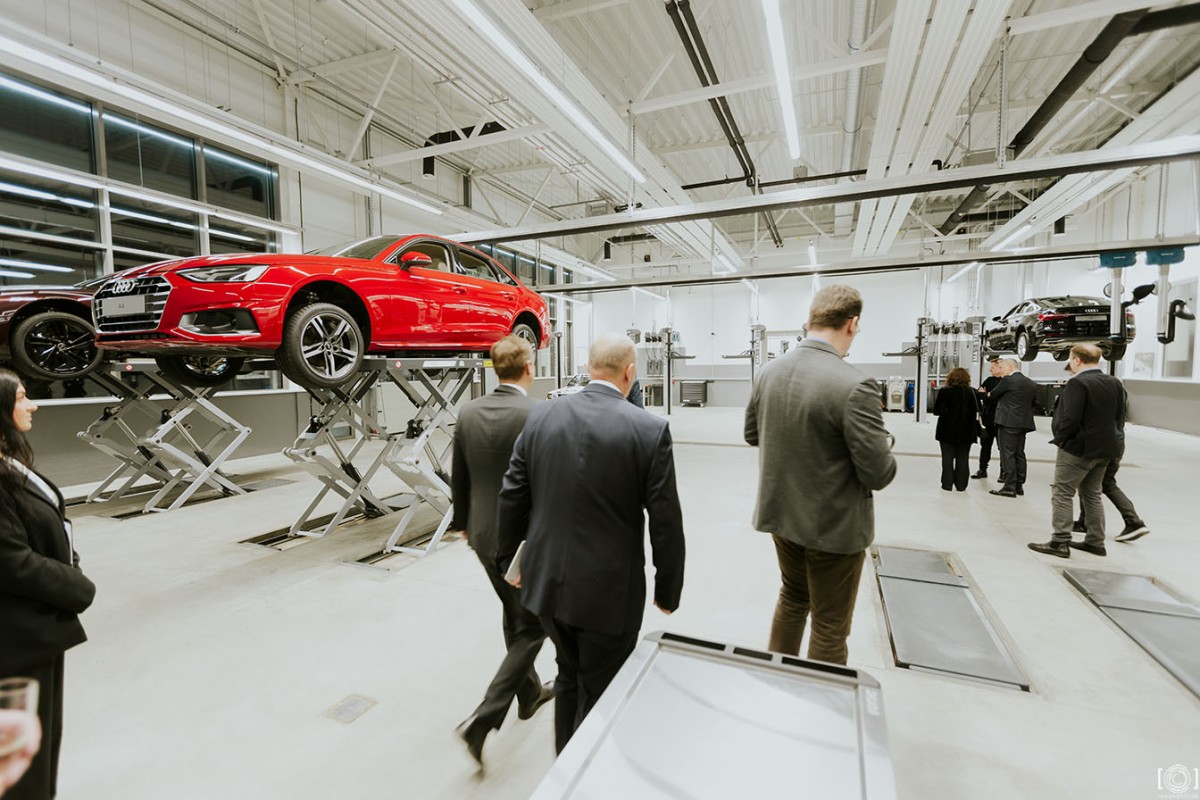 Jaunā “Audi” centra būvniecības darbi noslēdzās 2023.gada otrajā pusē, un tā ēka ir uzbūvēta divos stāvos ar kopējo platību 3 672 m2, savukārt kopējā zemes platība ir mērāma 23 281 m2. Ēkas pirmais stāvs ir atvēlēts automašīnu ekspozīcijai, kā arī auto servisa telpām, tostarp nodrošinot klientiem tādu pakalpojumu saņemšanu kā auto apdrošināšana, rezerves daļu iegāde u.tml.