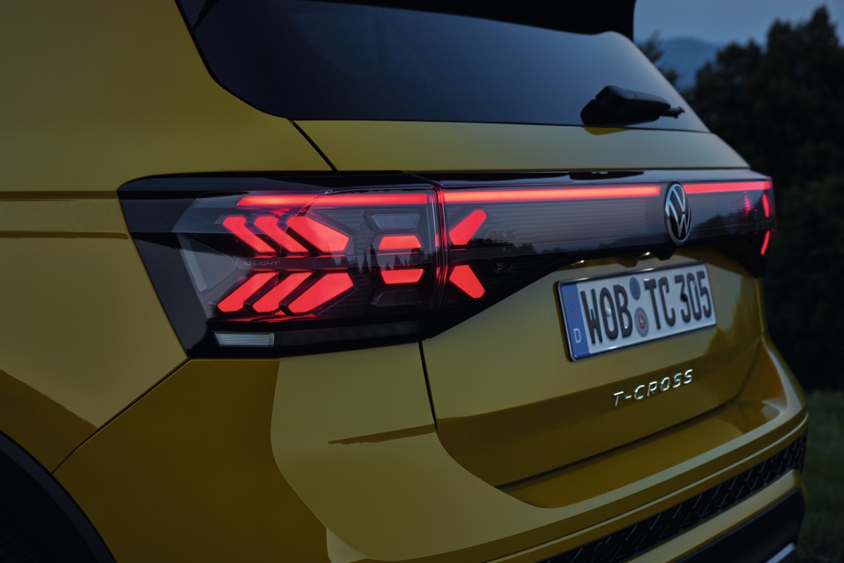 No ārpuses atjaunotais T-Cross uzreiz atpazīstams pēc tā priekšpuses un aizmugures jaunā dizaina ar jauniem LED priekšējiem lukturiem, LED dienas gaitas gaismām, kas T-Cross integrētas pirmo reizi, un LED aizmugurējo lukturu kopām. Šie elementi ir iekļauti standarta komplektācijā, savukārt IQ.LIGHT LED matrix priekšējie lukturi ir pieejami papildu aprīkojumā. Šie lukturi pirmo reizi bija pieejami Touareg modelī, taču tagad ir pieejami arī jaunajā T-Cross. Populārā SUV panelis ticis pilnībā pārveidots – tāpat kā lielākajos Volkswagen modeļos, panelim ir mīksts polsterējums un izmantoti ievērojami augstākas kvalitātes virsmas materiāli.
