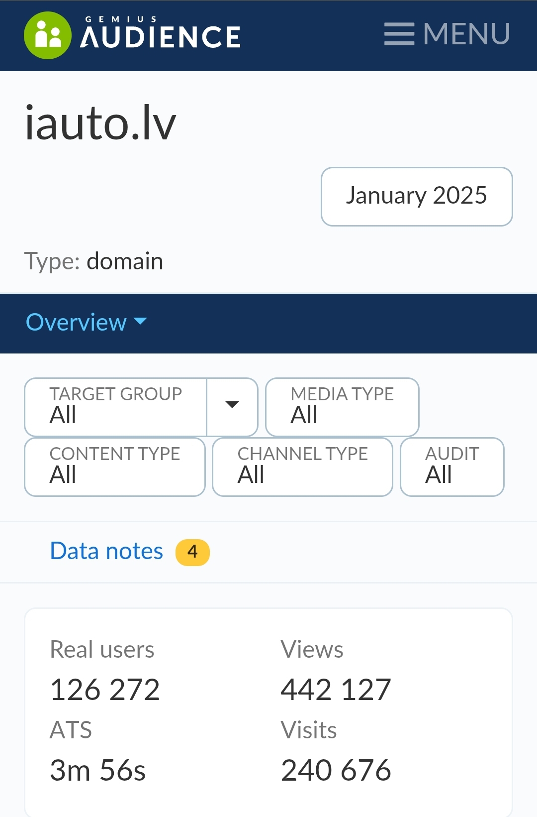iAuto.lv apmeklējuma rezultāti janvārī Foto: Ekrānšāviņš no Gemius