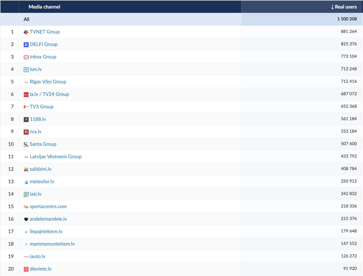 Top 20 apmeklētākie interneta mediji Latvijā Foto: Ekrānšāviņš no Gemius