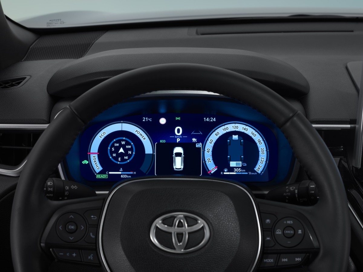 Standarta aprīkojumā ietilpst arī Toyota Smart Connect informācijas un izklaides sistēma ar 10,5 collu augstas izšķirtspējas centrālo ekrānu, pilnībā digitāls 12,3 collu mērinstrumentu panelis un apsildāma stūre.