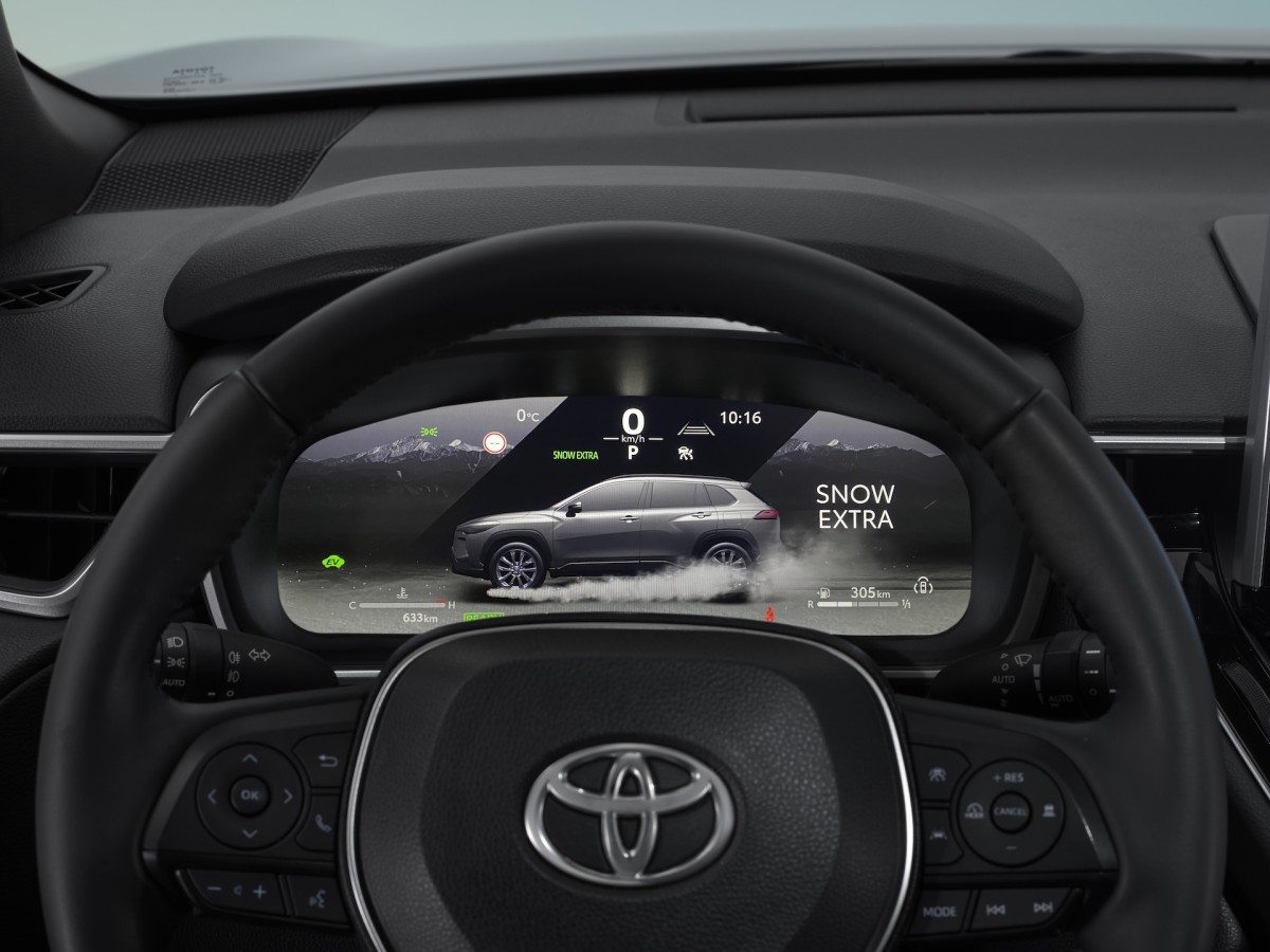 Corolla Cross ir pieejams ar Hybrid 140 vai Hybrid 200 hibrīda sistēmām, kas nodrošina dažādām vajadzībām piemērotu veiktspēju un augstu efektivitāti. AWD-i pilnpiedziņas sistēma Hybrid 200 versijā tagad ir papildināta ar Snow Extra režīmu drošai un stabilai braukšanai pa sniegotiem ceļiem.