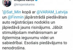 Ministru prezidents Krišjānis Kariņš (JV) uzdevis pārskatīt Satiksmes ministrijas (SM) virzītos grozījumus likumā, kas paredzēja ar transportlīdzekļa reģistrācijas nodokli aplikt vieglos automobiļus, kuri ir vecāki par pieciem gadiem un pēc ievešanas no ārvalstīm tiek reģistrēti Latvijā. Lasīt vairāk
