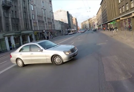Riteņbraucējs ievietojis videomateriāls, kurā redzams, kā viņš par mata tiesu izvairās no sadursmes ar "Mercedes-Benz" markas automobili, kura vadītājs rupji pārkāpj noteikumus. Lasīt vairāk